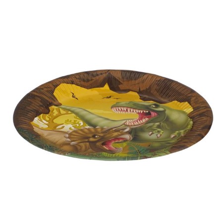 Tedd igazán ütőssé a dinoszaurusz tematikájú születésnapot ezekkel a Dinoszaurusz Party karton tányérokkal! A színes, vagány dinoszaurusz minták garantáltan lenyűgözik a kis felfedezőket, és minden falatot izgalmas kalanddá varázsolnak.