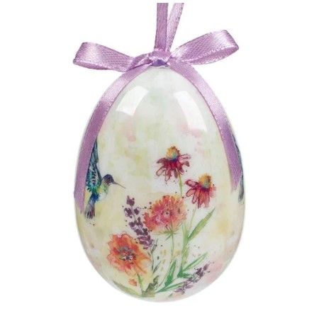 Varázsolj igazi húsvéti hangulatot otthonodba ezzel a vidám, kolibri és mezei virág mintás dísztojással! Ez a dekoratív tojás nem csak egyszerű dísz – egy kis játékosságot és derűt visz minden helyiségbe, ahol megjelenik.