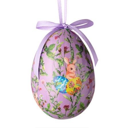Húsvéti tojás, nyuszikal, virágokkal, lila színben