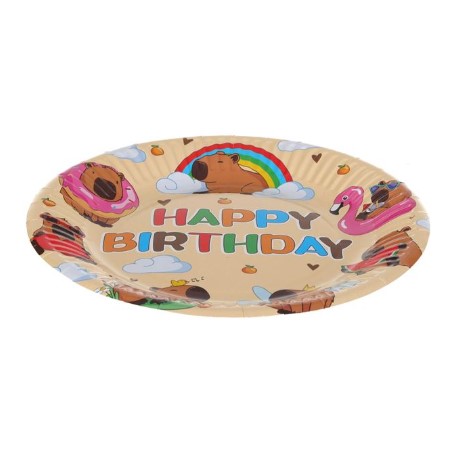 Dobd fel a gyerekzsúrt vagy a tematikus partit ezekkel a képibara mintás papírtányérokkal! Színes, aranyos mintájuk minden falatot vidám élménnyé varázsol, miközben a praktikus, eldobható kartonanyag egyszerűvé teszi a rendrakást a buli után. Tedd különlegessé az étkezést a képibara mintás papírtányérokkal, és teremts mosolygós, emlékezetes pillanatokat minden vendég számára!