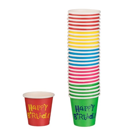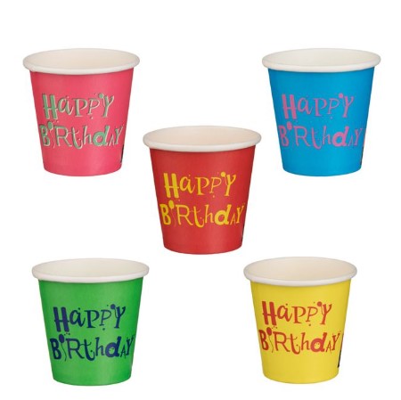 Dobd fel a születésnapi bulit ezekkel a többszínű, Happy Birthday feliratú papírpoharakkal! Élénk színeikkel és vidám mintáikkal garantáltan mosolyt csalnak minden vendég arcára. Praktikus, eldobható kialakításuknak köszönhetően pedig a buli után a rendrakás is gyerekjáték.